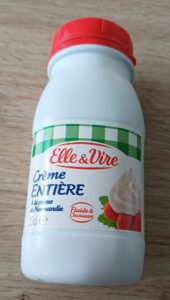 - 50cl de crème liquide à 30% de matière grasse. J’utilise la crème fluide entière Elle et Vire à la crème de Normandie.